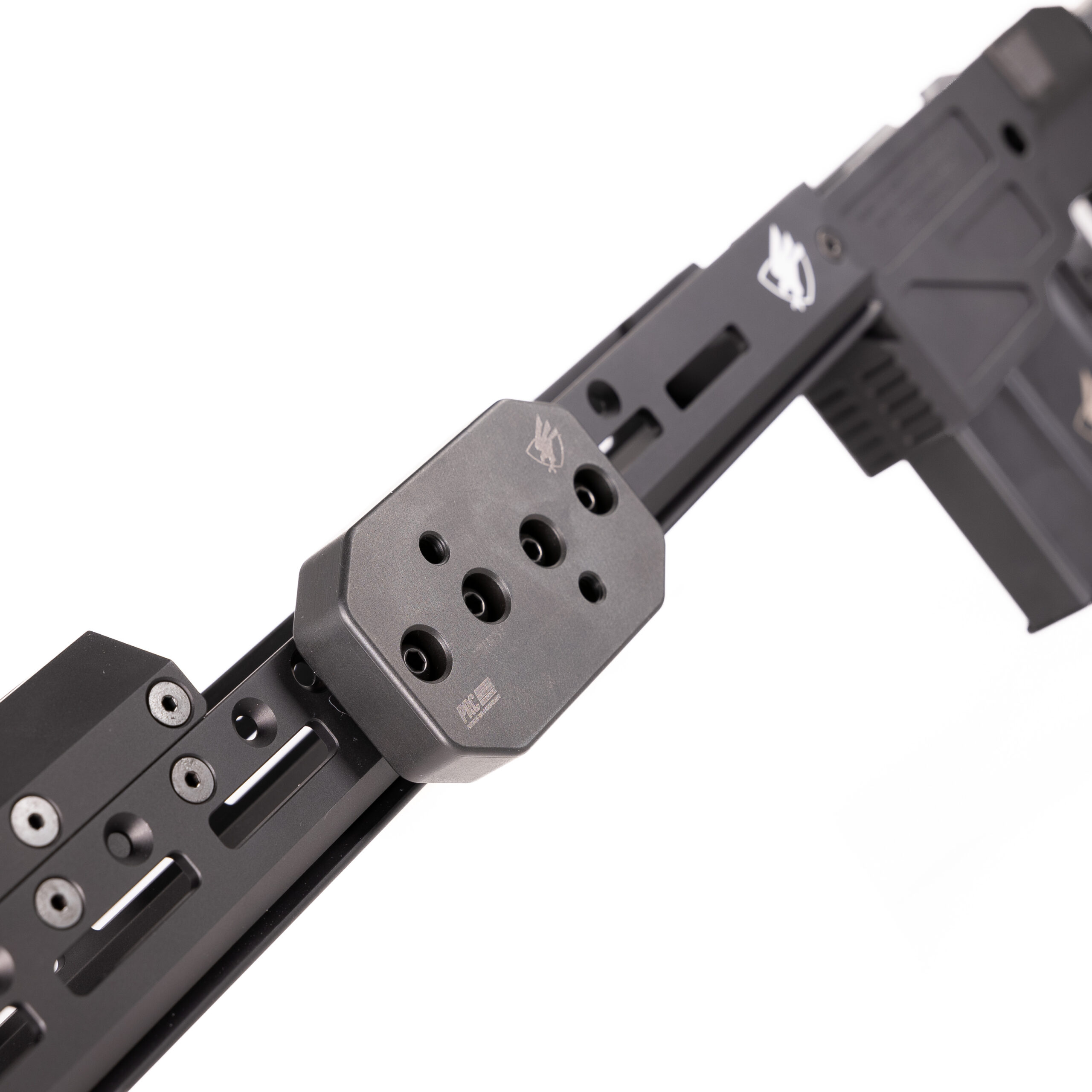 - Full length Arca-Swiss Rail for attachments like ADM Gravity Blocks, bipods, lights, lasers, or barricade stops